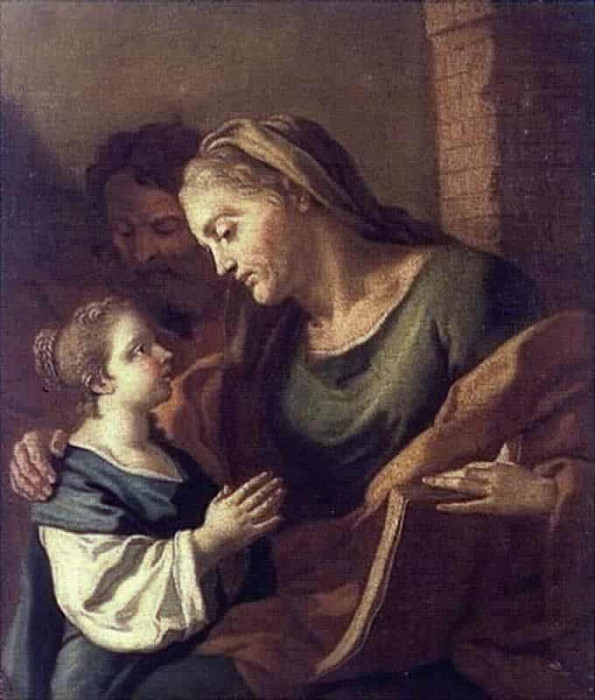 La palette de couleurs est dominée par des tons sombres et terreux, accentués par des touches de rouge vif, notamment sur la robe de l’une des figures féminines, créant un contraste saisissant et attirant lœil. Le traitement de la lumière est particulièrement remarquable : elle souligne certains visages et draperies, tandis que dautres zones restent dans une pénombre intense, contribuant à latmosphère de mystère et de solennité.