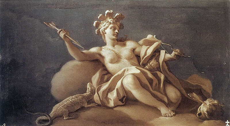 Il est plausible que lœuvre explore un thème dascension et de triomphe. La figure féminine, par sa posture et ses attributs, semble incarner une force nouvelle, une puissance en devenir. La présence des animaux, à la fois menaçants et soumis, suggère la nécessité de contrôler et de dompter les forces de la nature ou les éléments contraires à la progression. L’ensemble dégage une impression de force, de détermination et dune ambition affirmée. L’absence de repères spatiaux précis contribue à laspect symbolique et intemporel de la scène, la sortant dune représentation réaliste pour la propulser dans un registre allégorique.