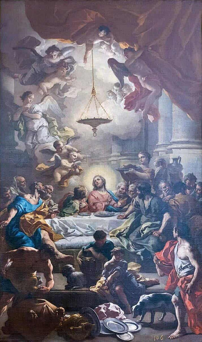 Au premier plan, des éléments épars, tels que des plats et des restes de nourriture, renforcent limpression dun moment de vie interrompu. La présence dun animal, probablement un agneau, suggère des connotations religieuses, évoquant le sacrifice et la rédemption.