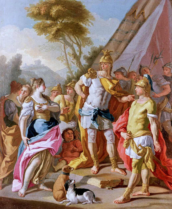 Au premier plan, un petit chien, peint avec une grande attention aux détails, apporte une touche de réalisme et dintimité à la scène. Sa présence, inattendue dans un contexte héroïque, peut être interprétée comme une allusion à la fidélité et à la loyauté, des vertus essentielles à lhéroïsme.