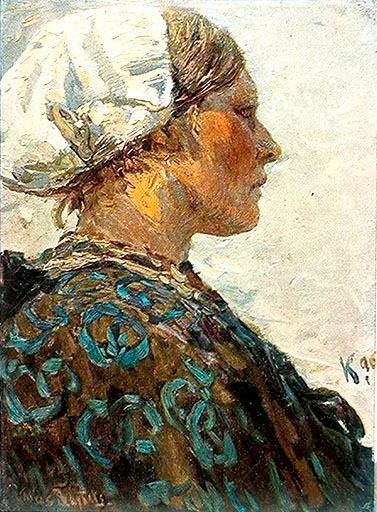 Le visage de la femme, aux traits marqués par le temps et lexposition aux éléments, témoigne dune certaine robustesse et dune vie active. Le nez est long et fin, le menton ferme, les lèvres fines et légèrement pincées. Lexpression est concentrée, presque mélancolique, mais sans être tragique. Elle dégage une certaine dignité et une présence silencieuse.