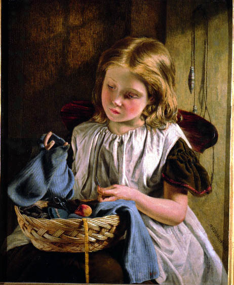 C'est peut-être peinture d’une jeune fille dans un champ tenant un panier avec un oiseau dessus et un oiseau perché sur le dessus d’un des paniers..