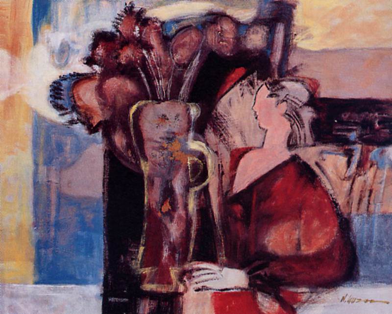 L’ensemble suggère une introspection profonde, une exploration des émotions et des souvenirs enfouis. L’absence de détails précis, la fragmentation des formes et lutilisation dune palette de couleurs restreinte contribuent à créer une ambiance de mystère et de solitude. On peut interpréter cette œuvre comme une métaphore de la perte, de la fragilité de lexistence ou de la difficulté à saisir la réalité. Le vase, symbole de receptacle, pourrait représenter la mémoire, tandis que les fleurs fanées évoquent léphémère et la décomposition. La figure humaine, repliée sur elle-même, incarne peut-être lisolement et la recherche de réconfort dans un monde incertain. La composition semble vouloir exprimer une rupture avec le réel, une plongée dans un univers intérieur où les frontières entre le rêve et la réalité s’estompent.