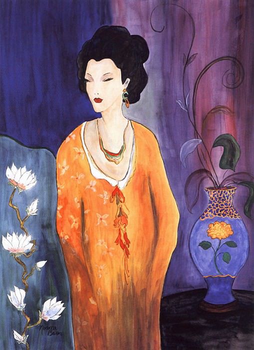 Labsence de contexte narratif explicite ouvre la voie à différentes interprétations. On pourrait envisager une réflexion sur la superficialité des apparences, la condition féminine dans un milieu sophistiqué, ou encore une méditation sur la beauté éphémère et la fragilité de l’existence. Le regard absent de la femme et la composition générale invitent à une introspection, suggérant une solitude intérieure malgré la beauté et l’élégance affichées. La palette chromatique, dominée par des teintes riches et contrastées, contribue à l’atmosphère particulière de l’œuvre, entre charme oriental et mélancolie européenne.